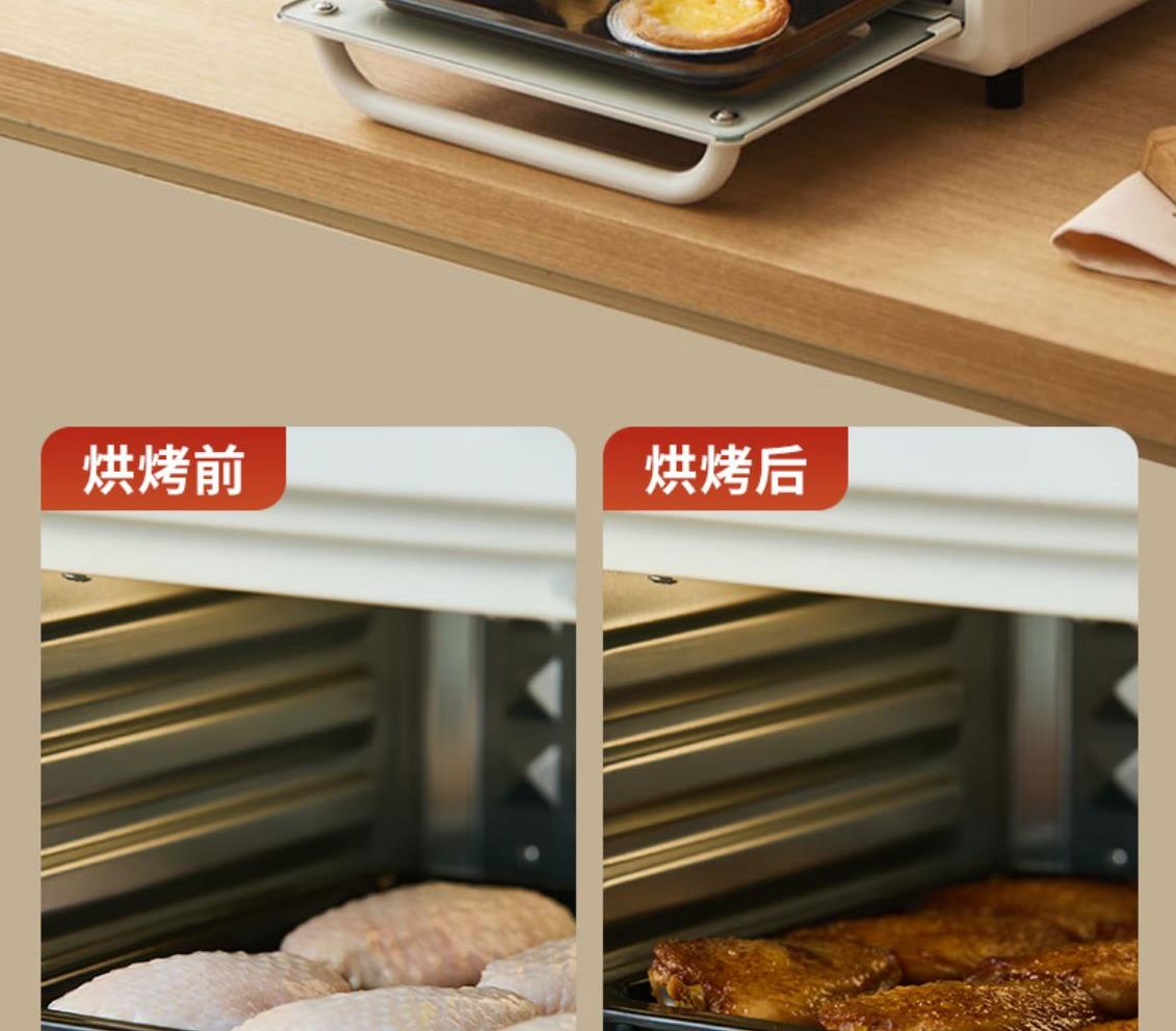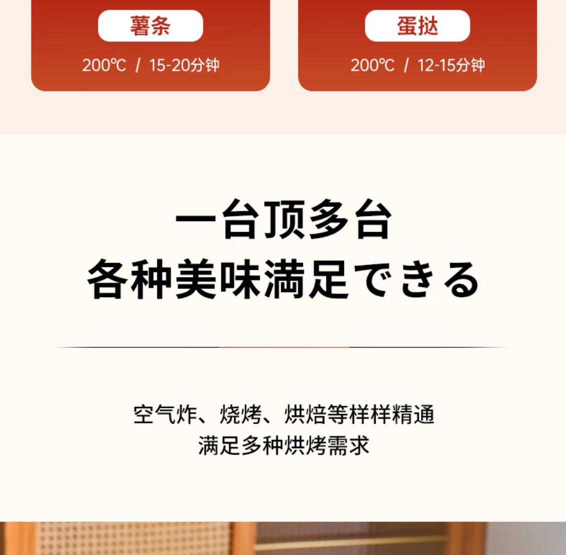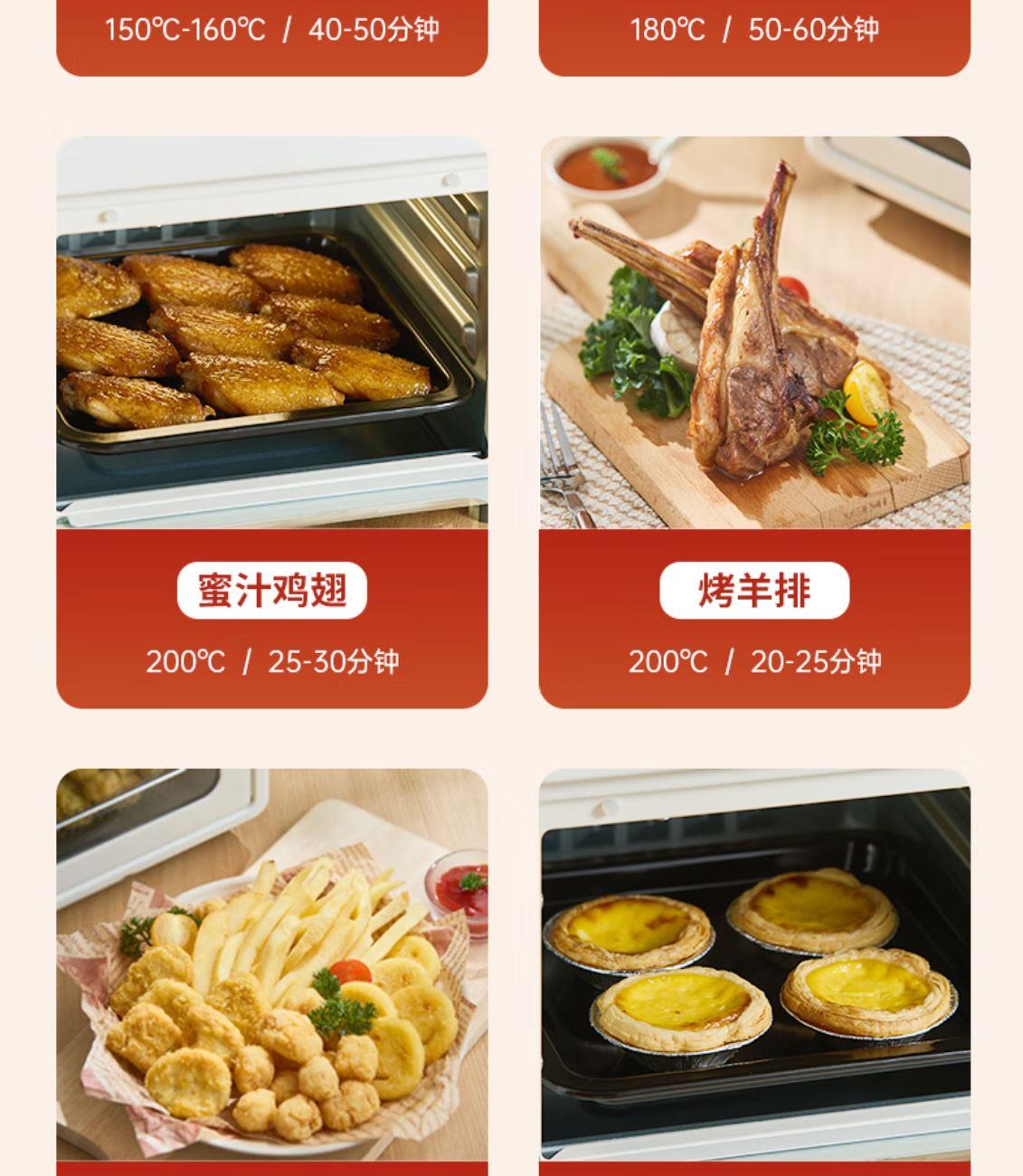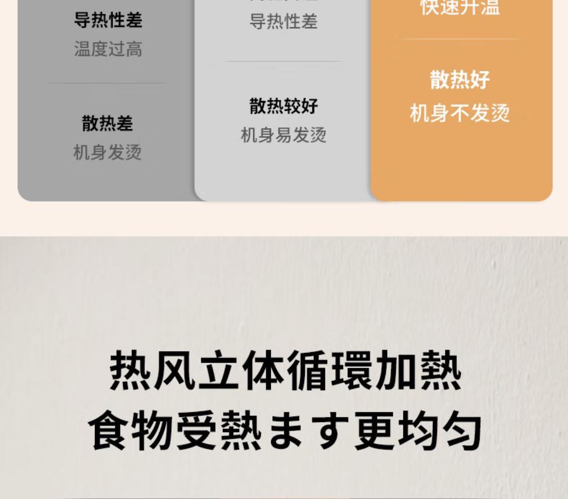 溫度調(diào)節(jié):100℃-230℃ 發(fā)熱方式:蚊香型發(fā)熱管 操作界面:機械式 容量:13L 額定電壓:220V 額定功率:1360W 產(chǎn)品尺寸:長280mm 寬296mm 高308mm 產(chǎn)品凈重:2kg 加熱方式:熱風(fēng) 內(nèi)膽材質(zhì):鍍鋅 可視玻璃門 空氣炸烤箱,功能更豐富炸、烤、烘焙樣樣行 金屬內(nèi)膽更安全 雙旋鈕設(shè)計操作簡單秒上手