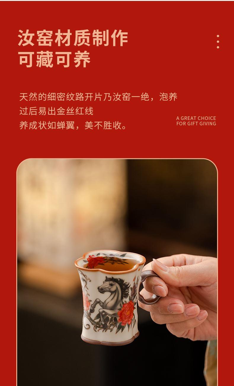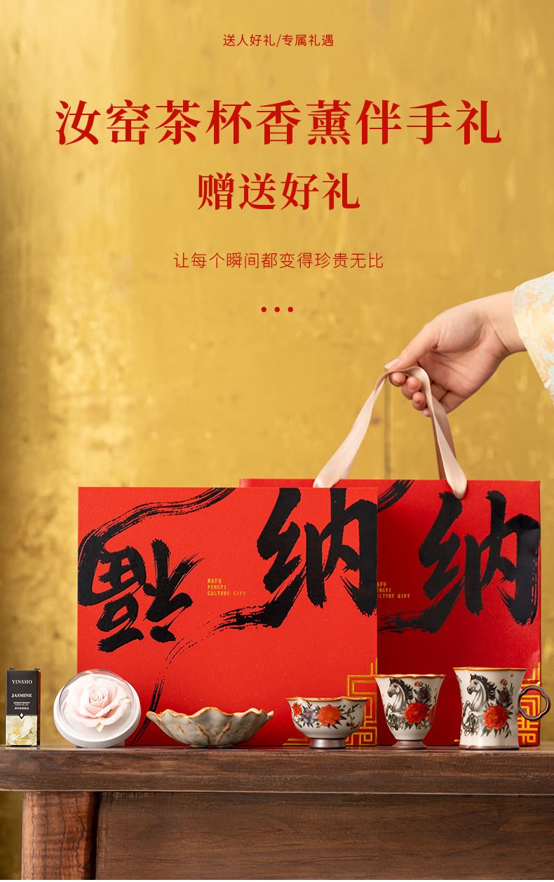 推薦說(shuō)明:馬年開(kāi)門(mén)紅禮品,馬上有錢(qián)香薰套裝,非遺文化手工瓷雕玫瑰,擴(kuò)香器,配精油一瓶。亞黃汝瓷,瑪瑙入釉,蟬翼開(kāi)片,內(nèi)外皆有花面,家有千財(cái)萬(wàn)貫,不如汝窯一片。技術(shù)新品。畫(huà)面堆料技術(shù),富有立體浮雕質(zhì)感,真實(shí)感強(qiáng)。杯身開(kāi)片,可養(yǎng)瓷。