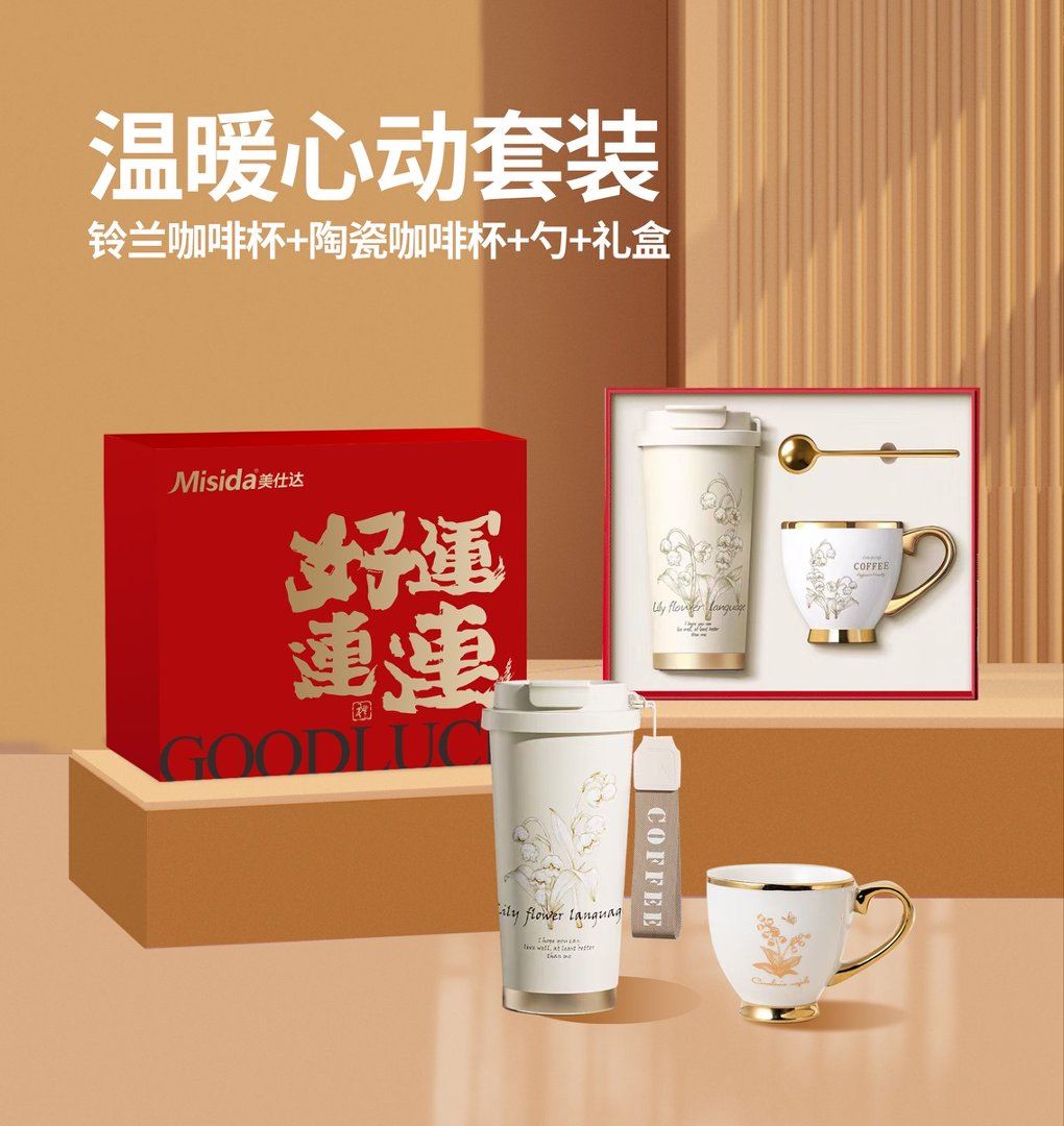 女神心動(dòng)套裝-旅行系列鈴蘭保溫杯+陶瓷咖啡杯+勺子