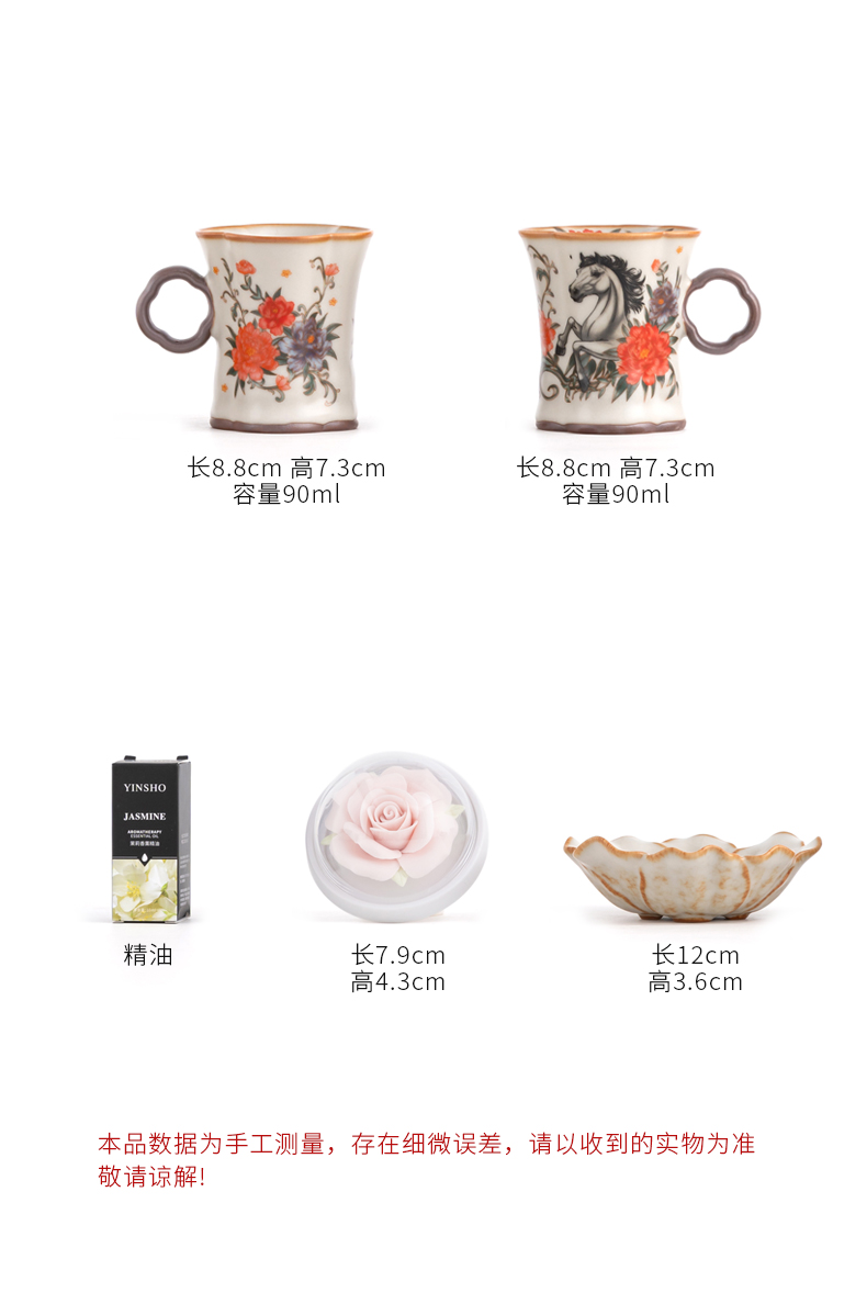 配 制:2杯 1香盤 1玫瑰瓷雕擴(kuò)香器 1精油 1收藏證書 1禮盒 手提袋 材質(zhì):汝黃瓷 規(guī)格:手柄杯 6*9cm 碟子直徑9.3cm高1.8cm 玫瑰擴(kuò)香器7.9*4.3cm 容量:手柄杯70ml 推薦說明:香薰套裝,非遺文化手工瓷雕玫瑰,擴(kuò)香器,配精油一瓶。亞黃汝瓷,瑪瑙入釉,蟬翼開片,內(nèi)外皆有花面,家有千財萬貫,不如汝窯一片。技術(shù)新品。畫面堆料技術(shù),富有立體浮雕質(zhì)感,真實感強。杯身開片,可養(yǎng)瓷。
