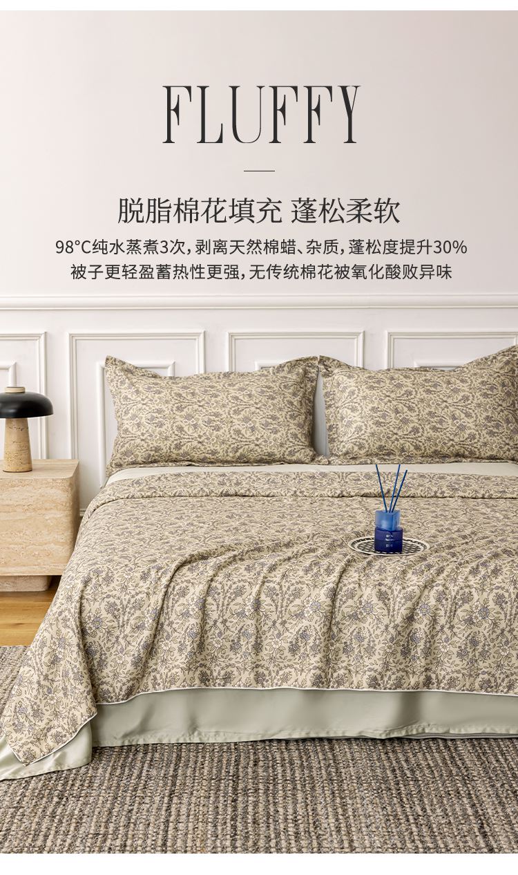 商品參數(shù): 面料:100棉 填充:100棉(脫脂棉花) 填充克重: 320g 規(guī)格:150*200cm(200*230可訂制)