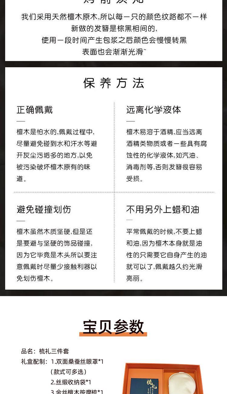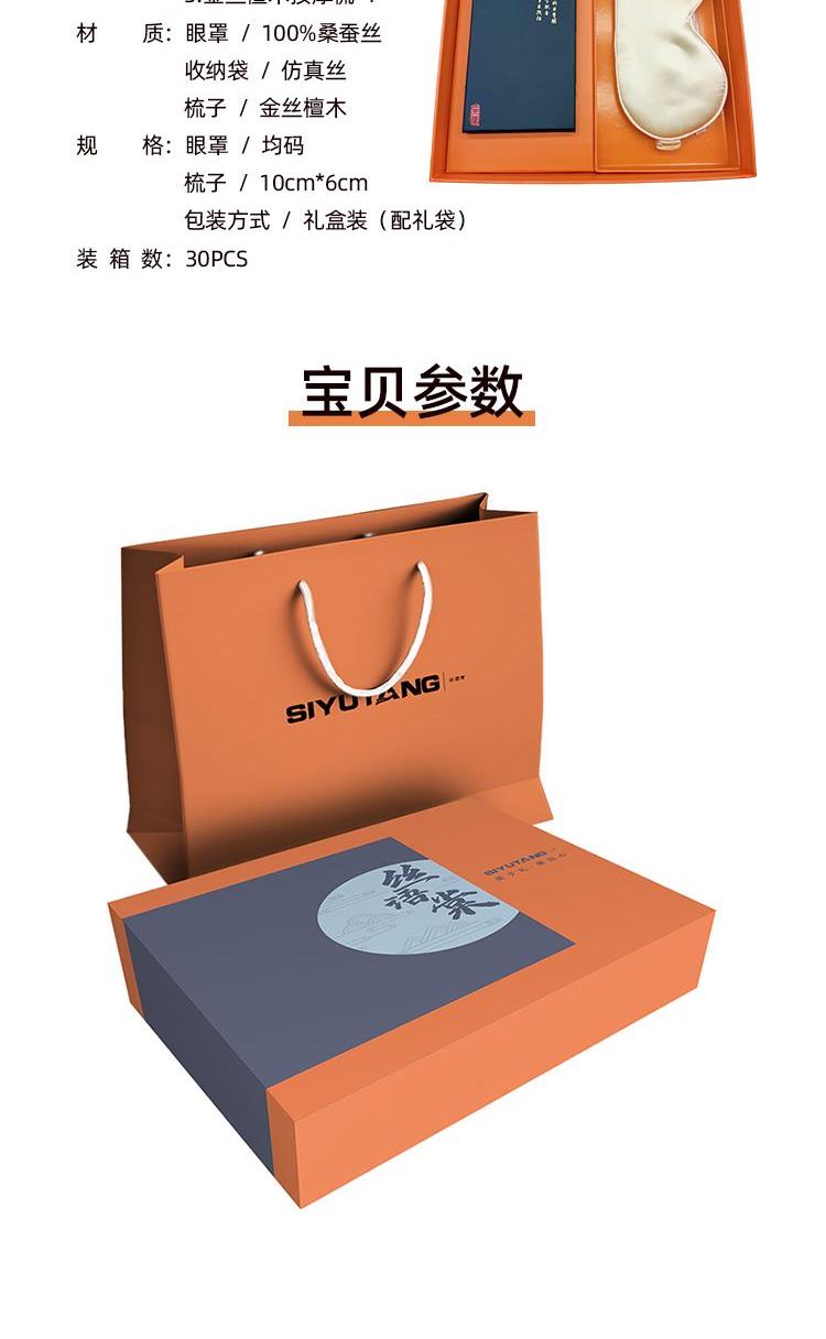 禮盒配制:1.雙面桑蠶絲眼罩*1(款式可多選) 2.絲緞收納袋*1 3.金絲檀木按摩梳*1 材質(zhì):眼罩/桑蠶絲 收納袋/仿真絲 梳子:金絲檀木 規(guī)格:眼罩:均碼 梳子:10cm*6cm 包裝方式:禮盒裝(配禮袋)
